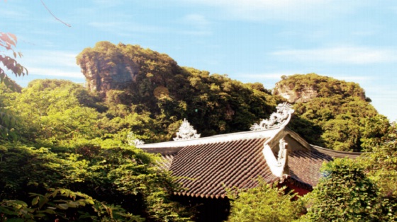 1. Núi Bái Đính nổi cao, thế núi đột khởi như một con long mã đang truy phong về